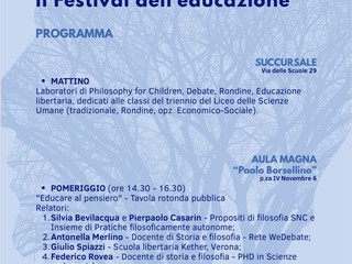 Il programma si articola in due momenti principali. Al mattino, presso la succursale di via delle Scuole 29, si svolgeranno laboratori di Philosophy for Children, Debate, Rondine ed educazione libertaria, pensati per coinvolgere attivamente gli studenti in percorsi di dialogo, argomentazione e consapevolezza. Il pomeriggio, dalle 14.30 alle 16.30, aperto alla cittadinanza, l’Aula Magna “Paolo Borsellino” dell’Istituto alberghiero ospiterà la tavola rotonda pubblica “Educare al pensiero”, occasione di approfondimento e confronto, aperto a tutti gli interessati. Vi interverranno esperti esterni e docenti dell’Istituto, tra cui Silvia Bevilacqua e Pierpaolo Casarin, Antonella Merlino, Giulio Spiazzi e Federico Rovea, che offriranno prospettive diverse sul valore della filosofia e delle pratiche educative contemporanee.