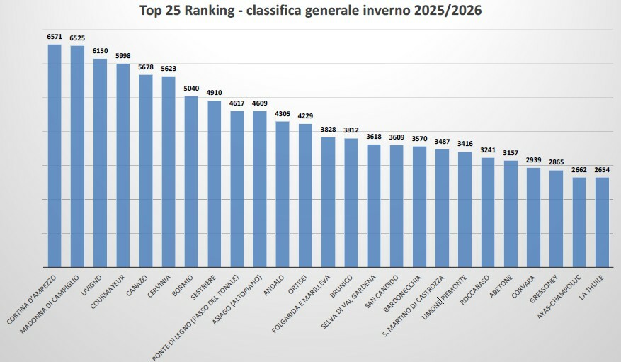 Nella top 25, Limone Piemonte – new entry in classifica- si posiziona al 19° posto con 3.416 preferenze espresse riuscendo a superare Roccaraso, Abetone, Corvara, Gressoney, Ayas Champoluc e La Thuile. Guidano la classifica Cortina d'Ampezzo (6.571), Madonna di Campiglio (6.525) e Livigno (6.150).