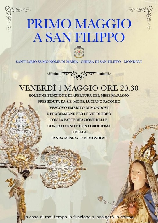 La celebrazione sarà presieduta da S.E. Mons. Luciano Pacomio, vescovo emerito della diocesi monregalese, e rappresenterà un momento di raccoglimento e devozione dedicato alla Vergine Maria, figura centrale della tradizione cattolica nel mese di maggio.