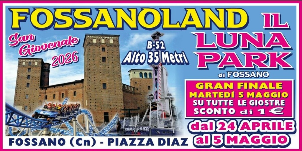 Torna anche nel 2026 uno degli appuntamenti più attesi della primavera piemontese: *Fossanoland – II Luna Park di Fossano. L'evento animerà la città dal 24 aprile al 5 maggio 2026, in occasione dei festeggiamenti per **San Giovenale*, patrono della città.