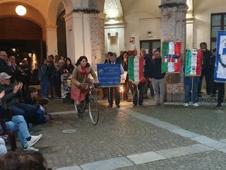 Alla fine, un momento carico di emozione e simbolismo: “Questa sera abbiamo ricordato le staffette partigiane, donne straordinarie che hanno contribuito in modo decisivo alla Liberazione. E allora vi chiedo di immaginare una di loro, Caterina Comba, nome di battaglia ‘Speranza’, arrivare qui in bicicletta. Per credere e continuare ad avere speranza in un mondo migliore, senza guerra e senza sofferenza”.