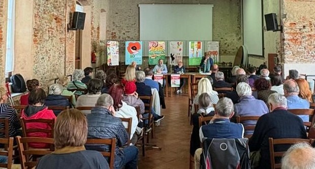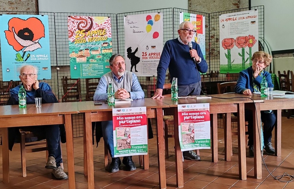 Grande partecipazione di pubblico, a Verzuolo in Palazzo Drago, per la presentazione del libro ‘Mio nonno era partigiano’ (Fusta Editore) curato dall’Anpi Verzuolo-Valle Varaita con l’immagine di copertina disegnata dall’artista Sandro Midulla.