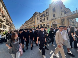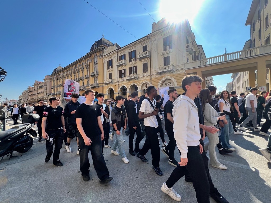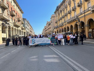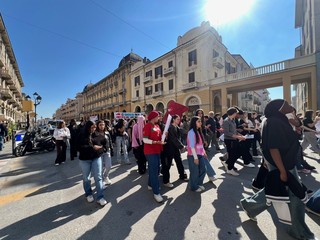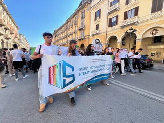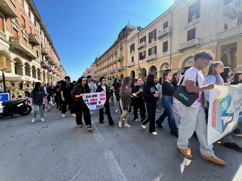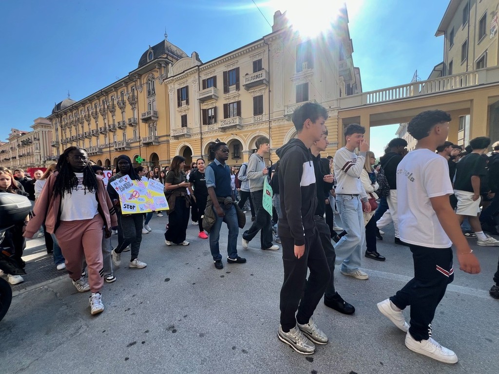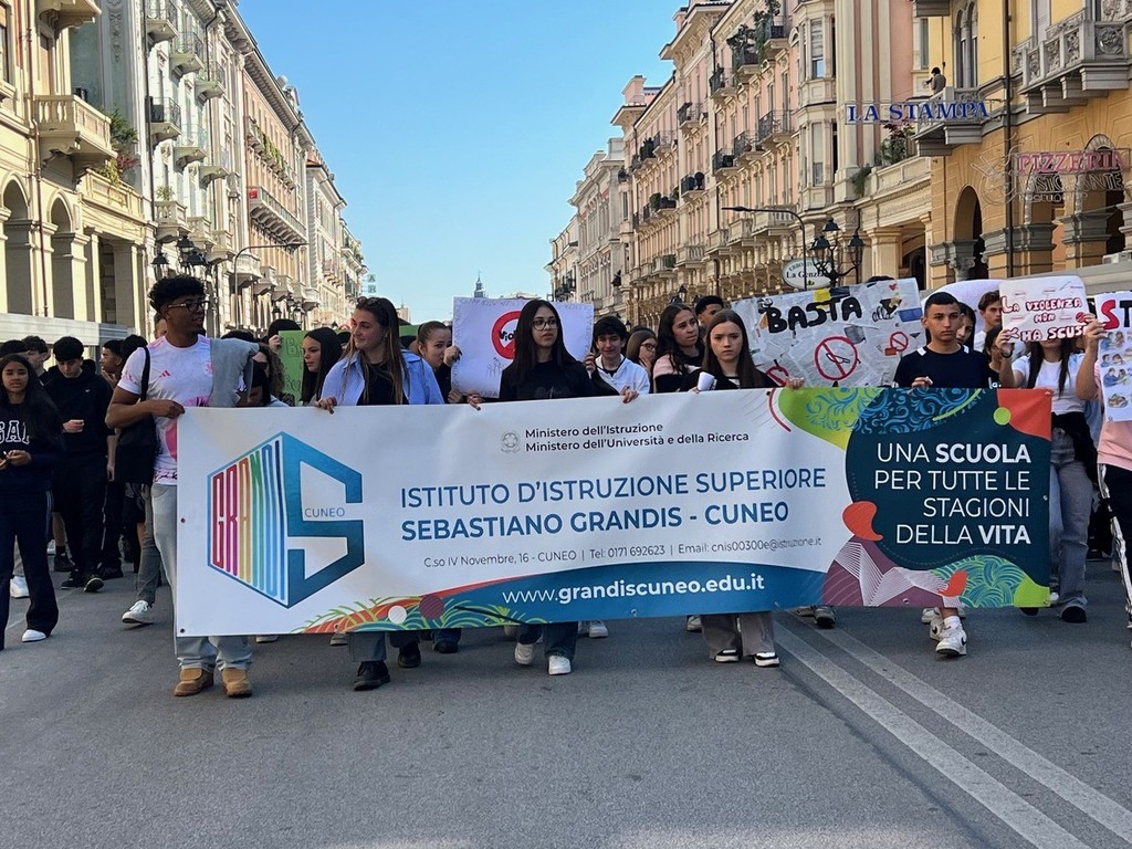 Questa mattina, lunedì 27 aprile, a Cuneo, gli studenti dell’Istituto d’Istruzione Superiore “Sebastiano Grandis” hanno sfilato lungo corso Nizza fino al parco della Resistenza per manifestare contro ogni forma di violenza, discriminazione e guerra.