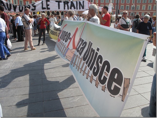 Sabato 20 settembre si è svolta a Nizza nella centralissima place Massena, una manifestazione per la salvaguardia ed il potenziamento della linea ferroviaria Cuneo - Nizza - Ventimiglia. La partecipazione, è stata massiccia e molto seguita.