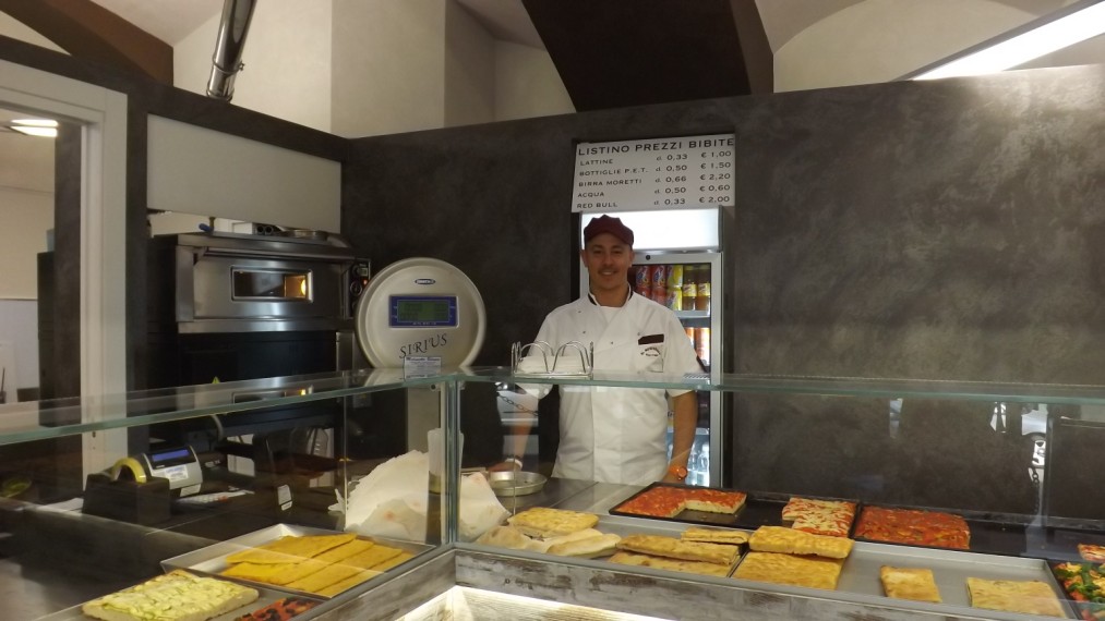 La lista è lunga, ne preparano di ogni tipo, dalla classica margherita, alla rossa, a quella con le patate, a quella del Marchesato (con pollo arrosto a pezzetti, pomodorini su un letto di valeriana). Non mancano nel menù le pizza ai 4 formaggi, ai gamberetti, allo stracchino, gorgonzola, tonno. Tra le specialità anche la farinata, che come tutti gli altri prodotti, si può portare a casa e gustare con la stessa fragranza di quando è sfornata nel locale, semplicemente scaldandola nel forno di casa.