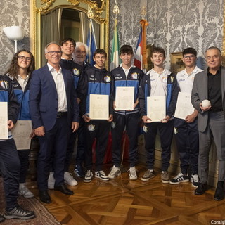 Alice Giavelli ed i giovani della pallapugno premiati a Palazzo Lascaris
