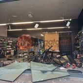 Assalto e furto nella notte alla Cicli Mattio di Piasco: sfondate le vetrine, danni ingenti [FOTO]