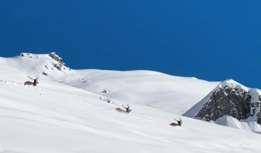 Lo spettacolo dei cervi nella neve fotografati dal rifugio Carbonetto a Demonte [VIDEO]